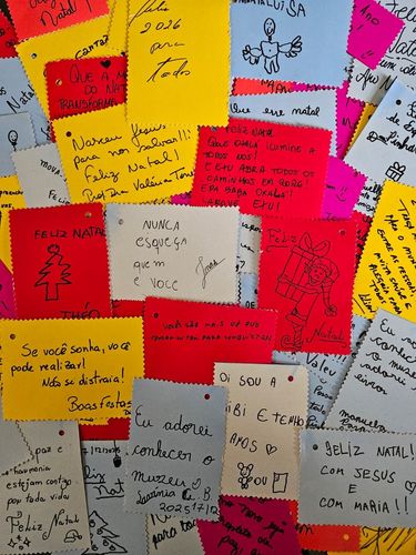 A ação convidava a população a participar deixando mensagens e recados na árvore de Natal instalada no museu, criando um espaço de expressão, memória e interação entre a comunidade e o patrimônio cultural.