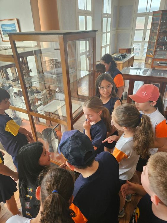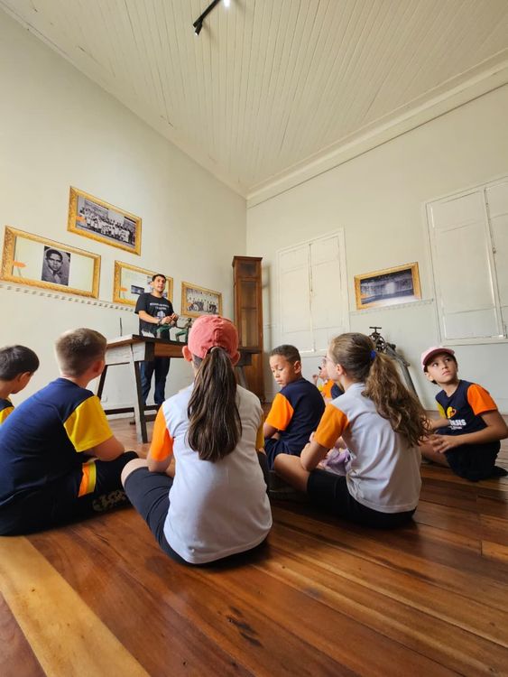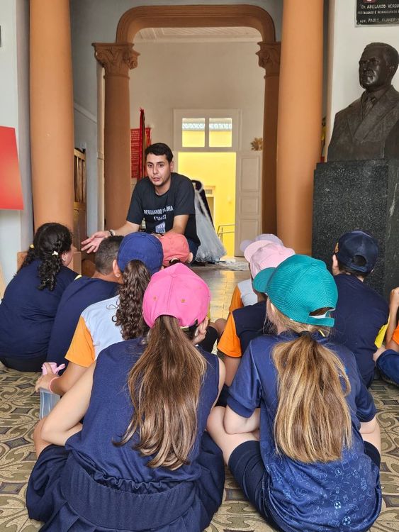 Registros da visita da escola Centro Educacional Gênesis de Espírito Santo do Pinhal no dia 04 de setembro de 2025 ao Museu e Biblioteca Dr. Abelardo Vergueiro César, recebidos pelos assessores do projeto Resguardo da Memória e da História.