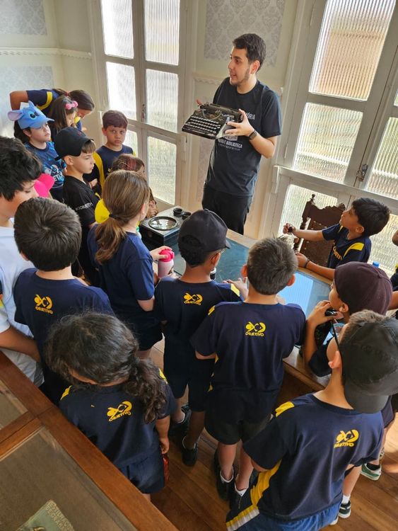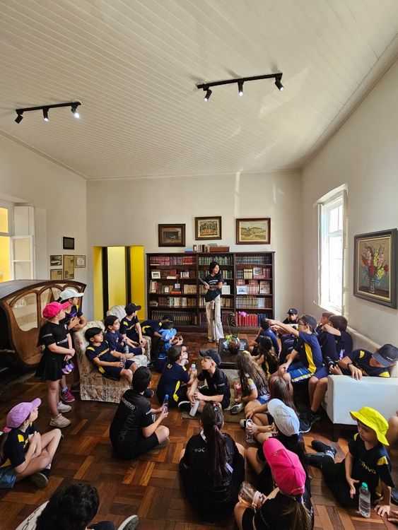Registros da visita da escola Centro Objetivo Pinhalense de Espírito Santo do Pinhal no dia 09 de setembro de 2025 ao Museu e Biblioteca Dr. Abelardo Vergueiro César, recebidos pelos assessores do projeto Resguardo da Memória e da História.
